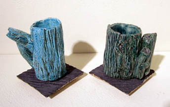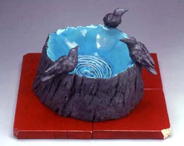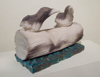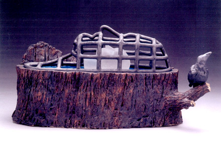 "Log Roost" smoked earthenware, 12"w x 7"d x 9"h