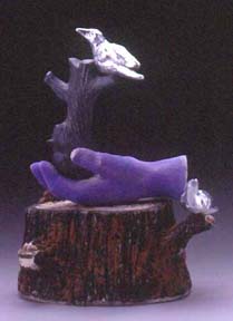 "Hand Roost" 18"h x 14"w x 10"d earthenware, silverleaf |